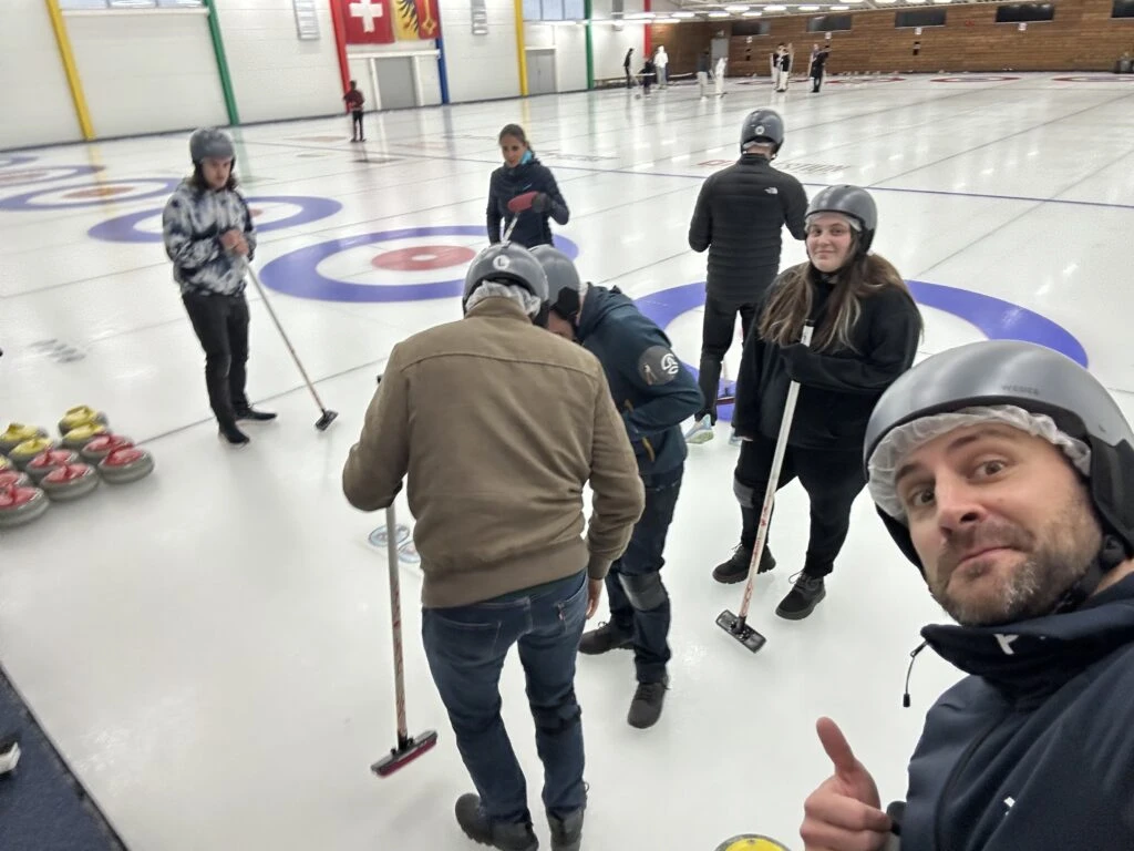 In the afternoon, we headed to the ice rink for an introduction to curling. Despite a slippery surface, there were no falls to report! The team enjoyed competing in intense strategy and sweeping matches.