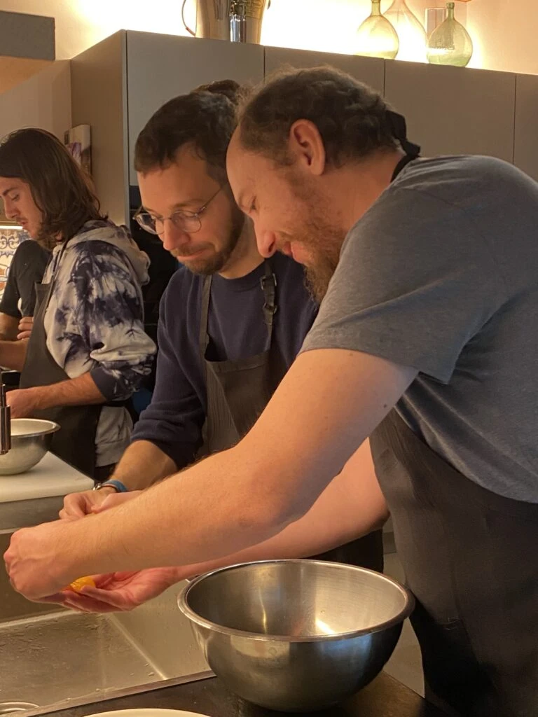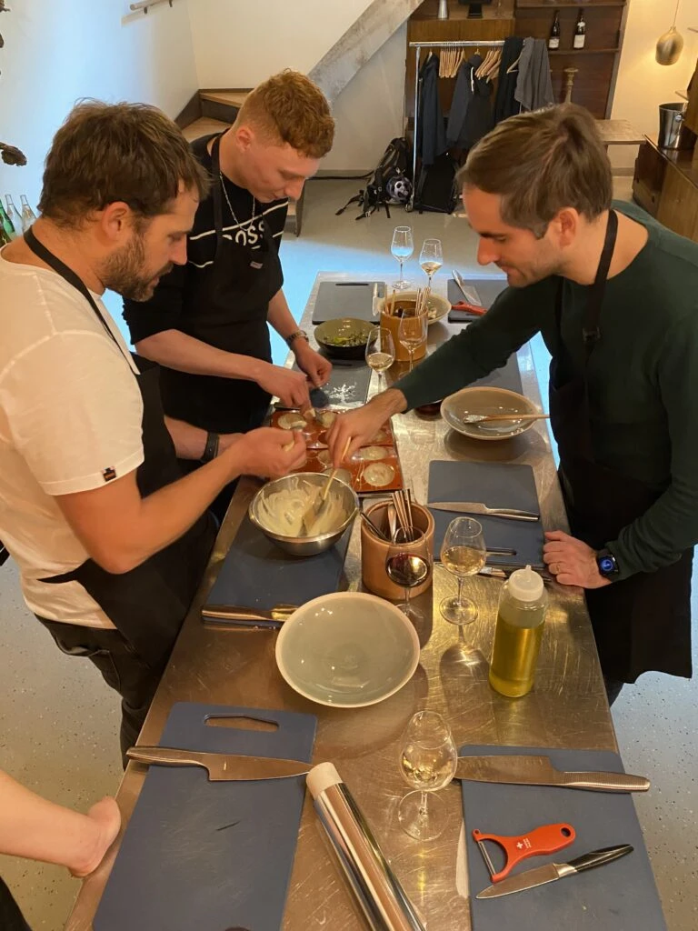 Bright and early, our team met in the city centre for a group cooking class. Together, we prepared a delicious three-course menu – starter, main course, and dessert – before enjoying it all around a friendly table, accompanied by a few good glasses of wine 🍷.
