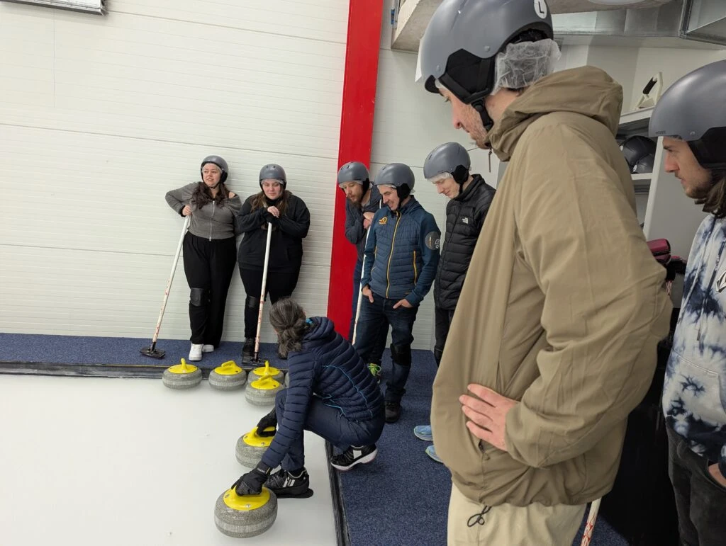 Hardly had the meal finished when the team set off for the second part of the day: a rendezvous at the Sous-Moulin Sports Centre for a curling session 🤝