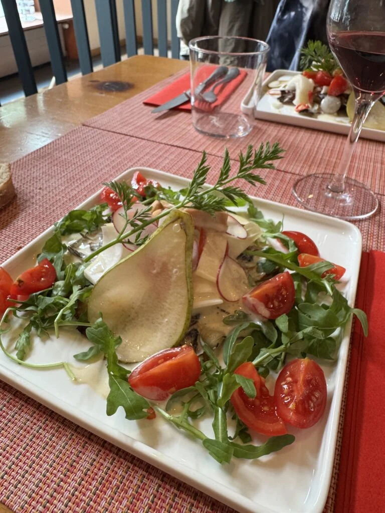 The team demonstrated great cohesion and fully invested themselves in preparing this delicious meal, which was then enjoyed (or rather devoured) in a convivial atmosphere, all accompanied by a bit (a lot) of good wine.