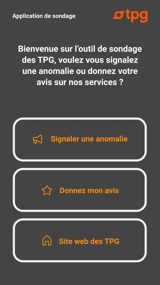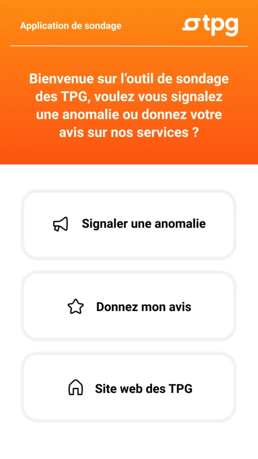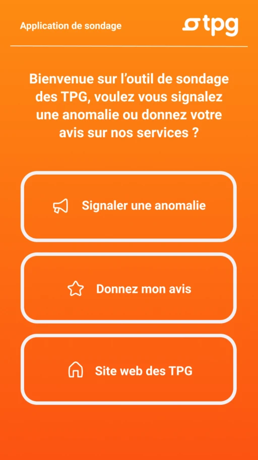 The Geneva public transport authority contacted us for the development of a web application dedicated to gathering on-the-ground information, following a continuous improvement logic for service quality. Accessible via a QR code displayed in vehicles, stops or premises, the application allows users to report a fault or provide feedback. Responses are collected in the form of a survey, with questions varying according to the type of environment identified via the scanned QR code.