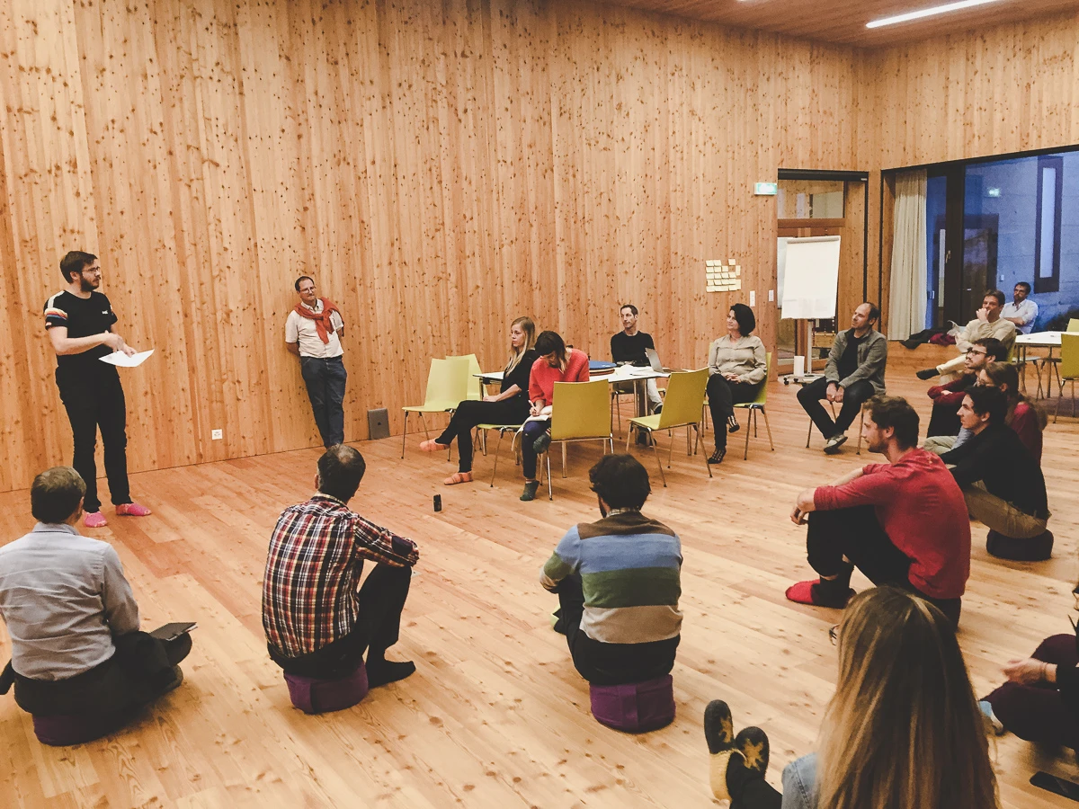 Et pourquoi en pantoufles nous diriez-vous ? Cet atelier s’est déroulé dans un hôtel dans le village de Granges en Valais. Cet hôtel offre un cadre très paisible, idéal pour l’idéation et a comme règle d’or, de ne pas porter de chaussure à l’intérieur d'où les pantoufles 😉