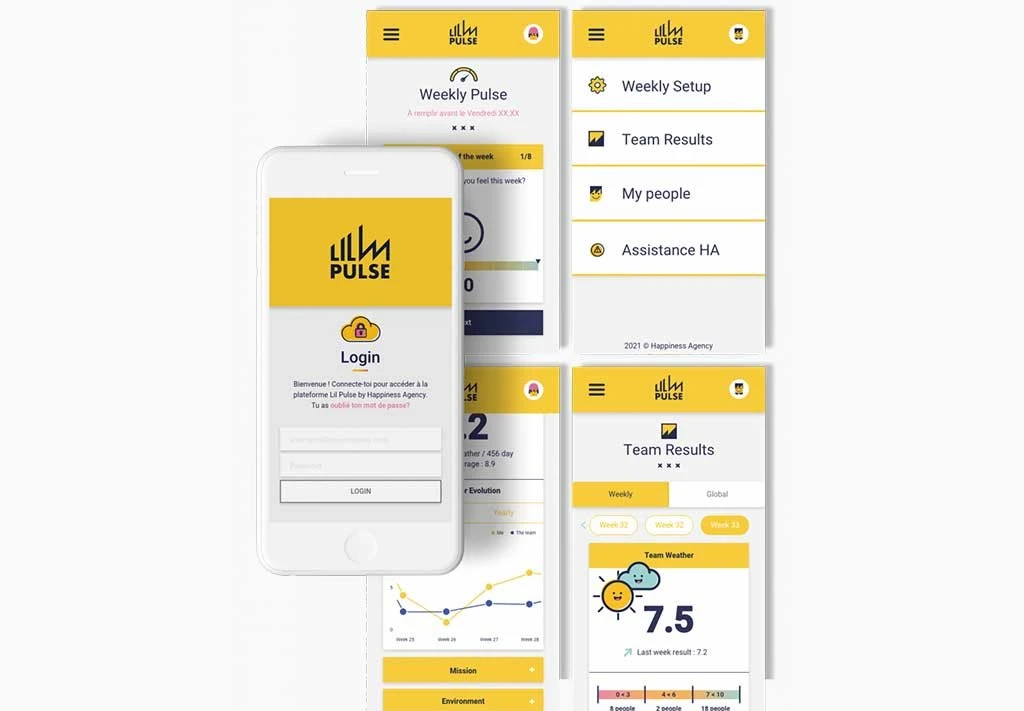 Suite au projet LilPulse lancé en 2021, The Happiness Agency nous a confié la création d’une nouvelle version de leur outil de suivi des employés, basée sur 3 axes : Mesurer, Former et Accompagner.