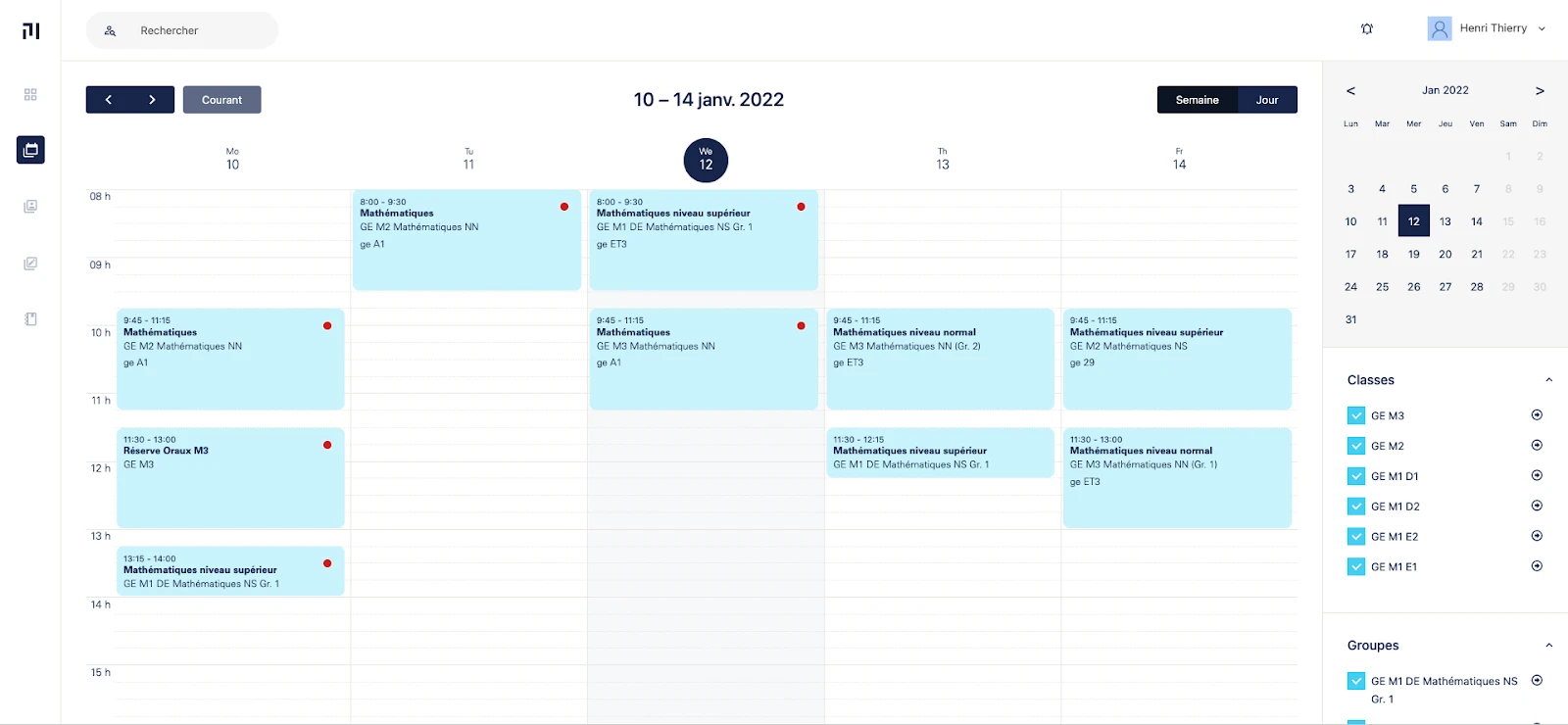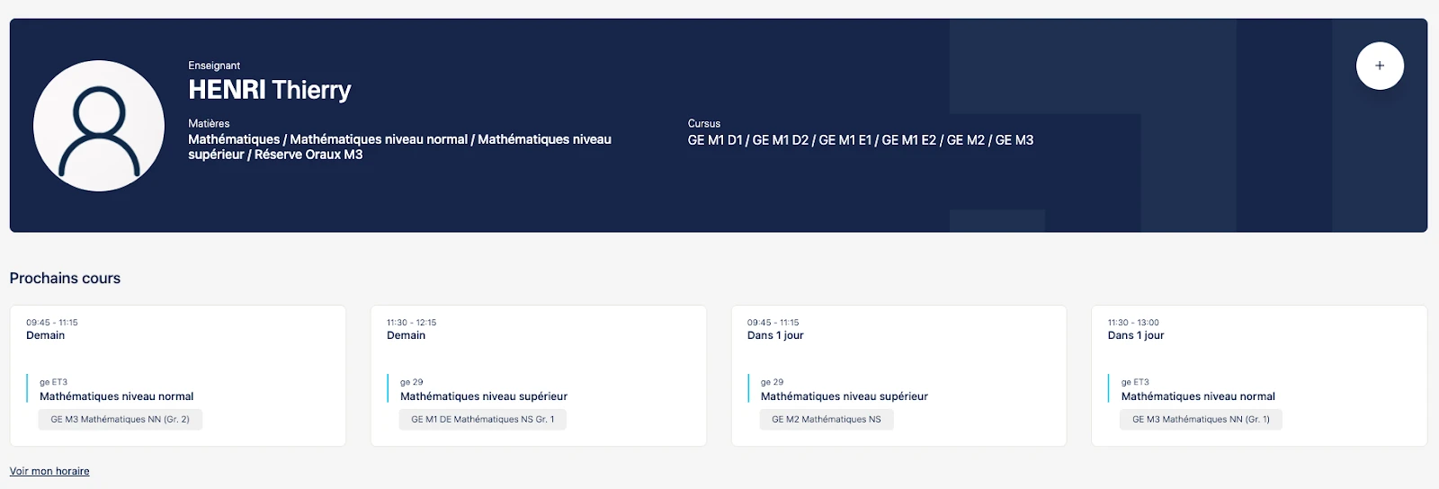 Un enseignant peut avoir un accès rapide à son planning, il peut créer des devoirs et les transmettre directement à ses élèves en les faisant apparaître dans leur emploi du temps. Il en est de même pour les évaluations.