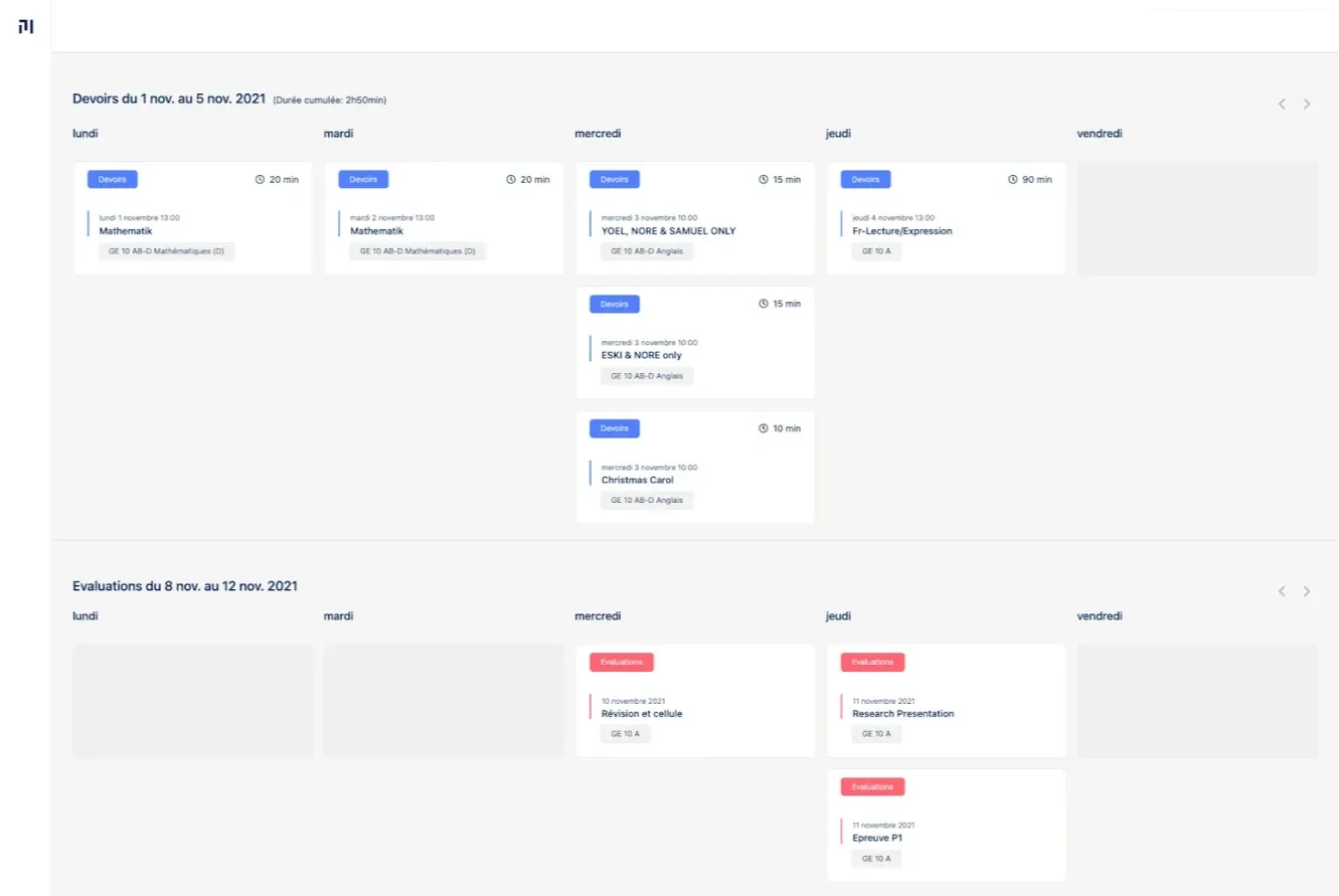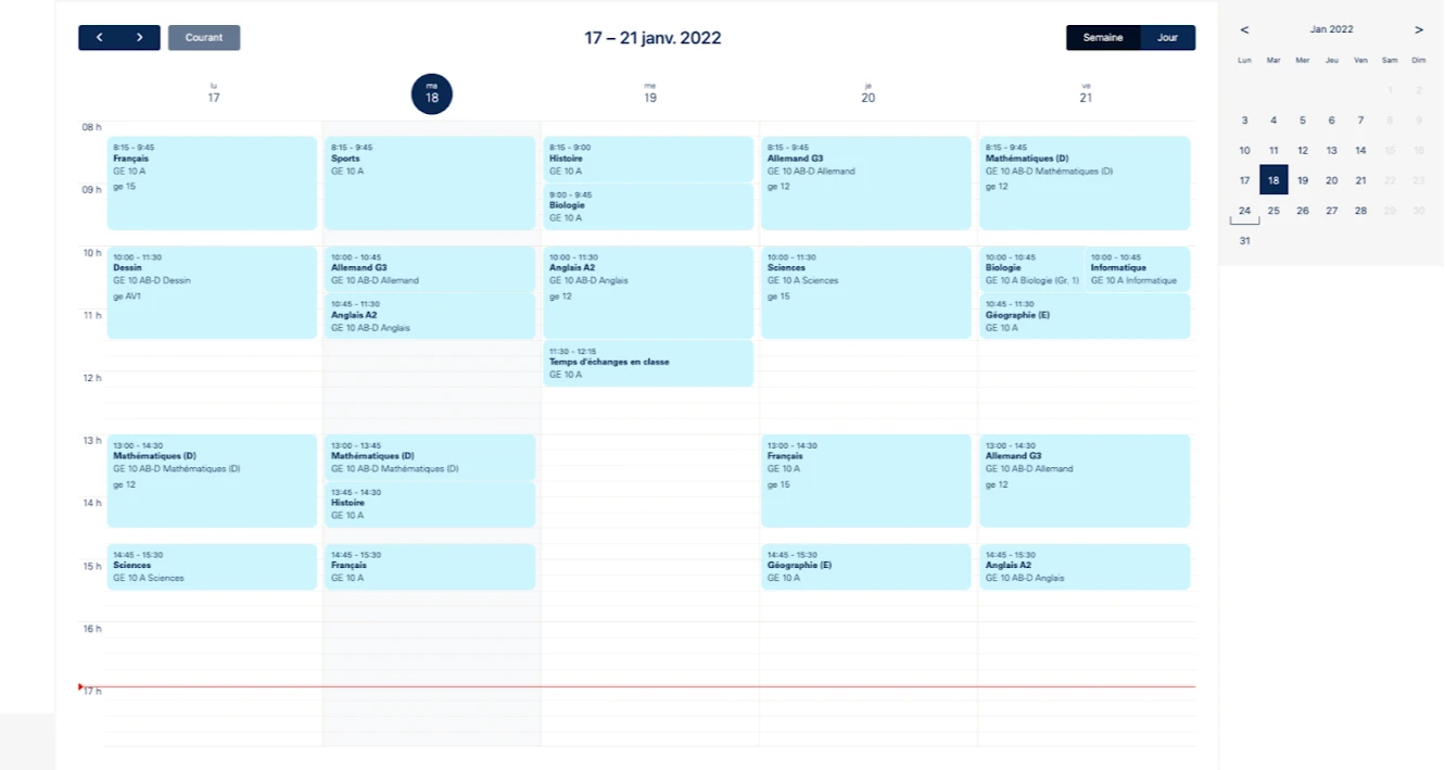 L’élève quant à lui a accès à son emploi du temps rempli par ses professeurs et maître de classe. En se connectant à l’extranet, il peut prendre connaissance de sa semaine en un simple coup d'œil. Ceci inclut les devoirs données par ses professeurs, les évaluations à venir et son emploi du temps de cours.