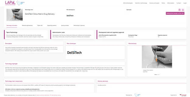 Le site LAPaL (Long-Acting Technologies patents and Licenses Database) est une base de données publique concernant des technologies médicales à longue durée d’action, leurs applications potentielles ainsi que la propriété intellectuelle les concernant.